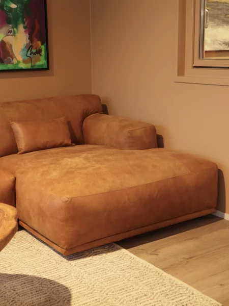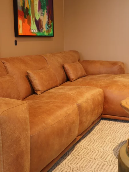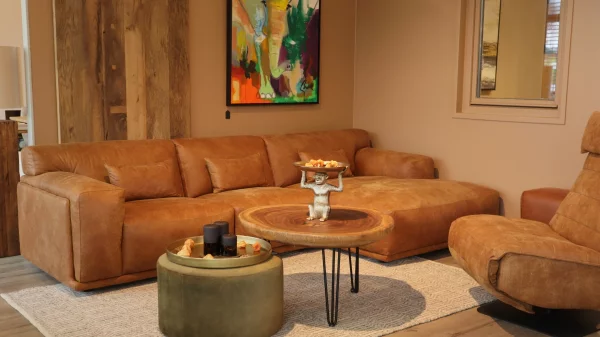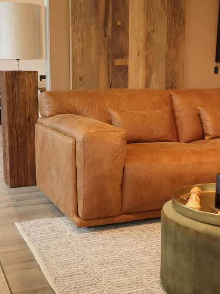 Ausstellungsstück Sofa Olivia, L-Form, Maße 298 cm breit x 167 cm lang, Echtleder Cognac, jetzt 3.999,- statt 4.925,-